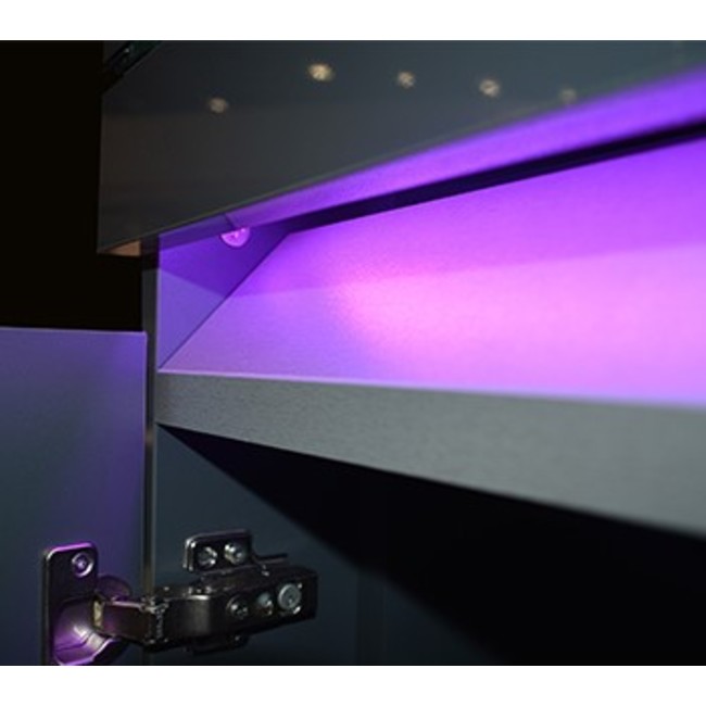 Une autre caractéristique intéressante est l'éclairage d'ambiance télécommandé dans l'armoire (dimmable, 640.000 couleurs, 20 programmes automatiques).
